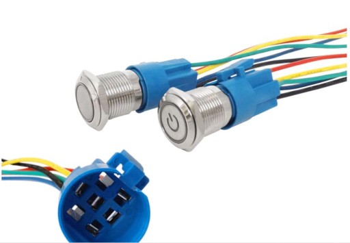 W zestawie: Przycisk podświetlany 16mm, gumowa uszczelka, nakrętka