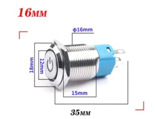 Кнопочный переключатель сброса 16 мм со светодиодом 5 В MO
