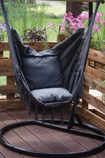 Połącz relaks zwykłego hamaka z nieco bardziej aktywną pozycją siedzącą - fotel wiszący jest idealny do popijania drinka lub czytania, pozwala się spokojnie bujać i zapomnieć o stresie codzienności.