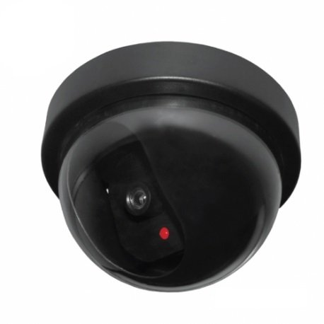 Atrapa kamery kopułkowej do prowadzenia monitoringu. Można ją zamontować w łatwy sposób na suficie lub w odwrotnej pozycji na półce.