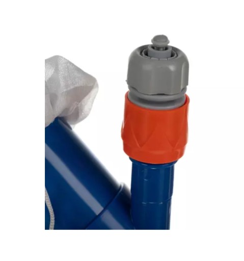 - 2 w 1 – jeden zestaw, ale dwie praktyczne funkcje. W zestawie jest siatka do wyławiania większych zanieczyszczeń z powierzchni wody basenowej oraz odkurzacz do dna basenu z napędem wodnym.