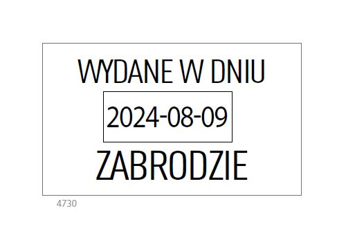 WAŻNE! Przy braku treści pieczątka zostanie wysłana bez tekstu z losowym kolorem wkładki tuszującej. Na przesłanie informacji czekamy maksymalnie 24 godziny od złożenia zamówienia na Allegro. W przypadku ich braku, pieczątka zostanie wysłana bez tekstu.