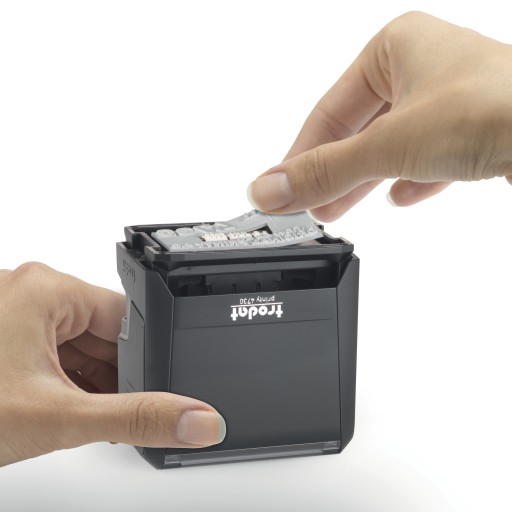 - Kompletny zestaw gotowy do użycia, składa się z automatu Trodat, poduszki oraz gumki.