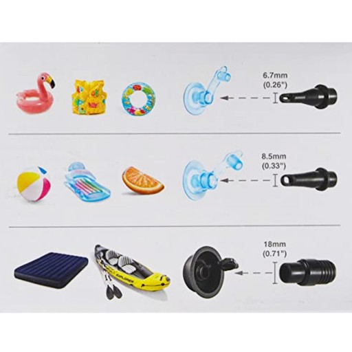 ✅ 3 KOŃCÓWKI: Trzy wymienne końcówki zapewnią możliwość pracy z każdym typem nadmuchiwanego sprzętu.