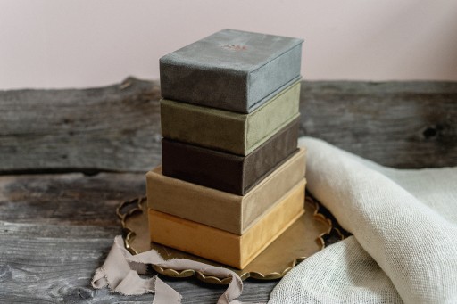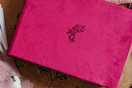 Aksamitne, welurowe pudełko na zdjęcia 13x18 cm, z personalizacją grawerem