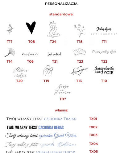 - W kolejnym kroku w wiadomości do sprzedającego podaj: symbol personalizacji, którą wybierasz (jeśli wybrałeś własny tekst, również go zamieść) oraz symbol koloru, który wybierasz.