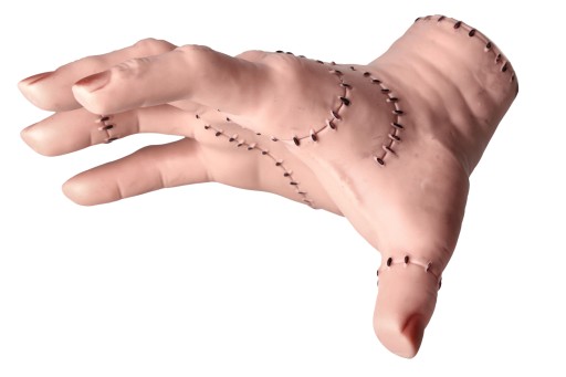 Dłoń jest pokryta bliznami, dzięki czemu jeszcze bardziej przypomina oryginał.