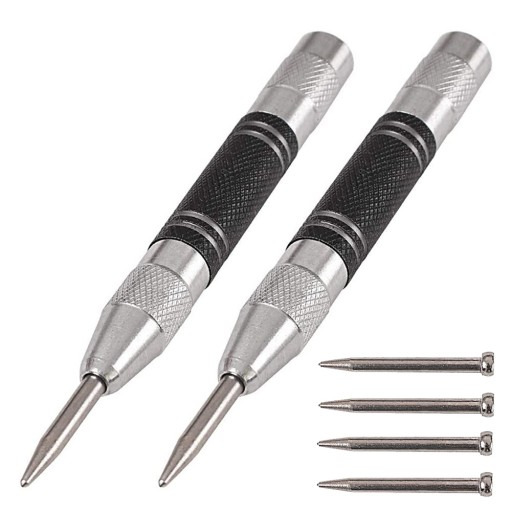 Cechy:* 1. Dobra jakość: wykonany ze stali wysokowęglowej, wytrzymały i o wysokiej twardości, punktak automatyczny to narzędzie o stożkowym punkcie, które służy do wcięcia w obiekcie;* 2. Wygodny w użyciu: ten cios ma mechanizm, który automatycznie uderza cios, gdy nacisk jest stosowany w dół; Nie jest wymagany młot.* 3. Wielofunkcyjny: faktycznie działa i tworzy solidny znak w drewnie, metalu, stali, aluminium, mosiądzu, miedzi i innych* 4. Antypoślizgowy: z teksturowanym uchwytem, ergonomiczny i antypoślizgowy, wygodny w chwytaniu, łatwy do kontrolowania.Dane techniczne:Długość: 12.8cmKolor: srebrny + czarnyMateriał: stal wysokowęglowaLista opakowanie:2 x punktak automatyczny4 x wymiana głowicy dziurkaczaUwagi:1. Proszę pozwolić 1-3mm różnice ze względu na pomiarze ręcznym, dziękuję za zrozumienie!2. Ze względu na różnicę między różnymi monitorami, proszę zrozumieć, że obraz może nie odzwierciedlać faktycznego koloru przedmiotu.