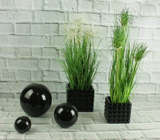 Materiał : ceramika/ błyszczące, czarne szkliwo.