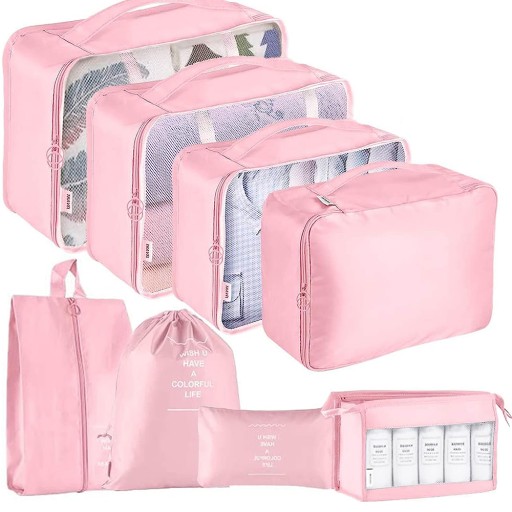 - Zawiera 3 pojedyncze kostki podróżne na ubrania, 1 kostkę z bielizną, 1 worek ze sznurkiem na brudne ubrania i przybory toaletowe, 1 kosmetyczkę na przybory toaletowe i przybory toaletowe, 1 torbę na buty, 1 małą torebkę na skarpetki, monety, długopisy, klucze i więcej.