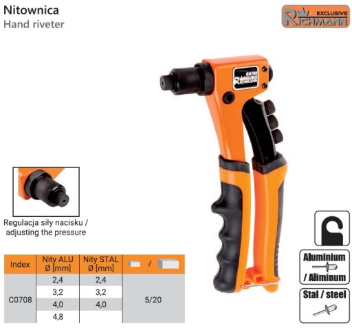 NITOWNICA DI NITÓW STALOWYCH I ALUMINIOWYCH 2,4-4,8mm RICHMANN