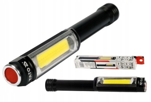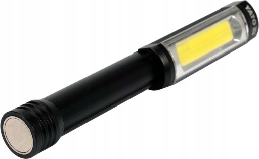 Aluminiowa latarka inspekcyjna YATO z 3 trybami pracy, w tym czerwonym światłem ostrzegawczym. Dioda COB zapewnia mocne, rozproszone światło 400lm.