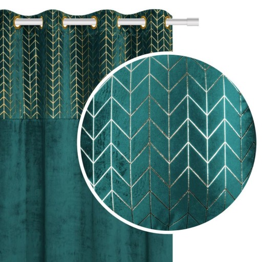 Zasłona welurowa ze złotym nadrukiem pasuje do większości wnętrz. Jest bardzo elegancka, w górnej części posiada złoty nadruk, który doda uroku pomieszczeniom.