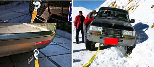Nasza linka wyposażona jest z obu stron w haki tzw. karabińczyki co znacznie usprawnia montaż linki zarówno do samochodu holującego jak i holowanego.