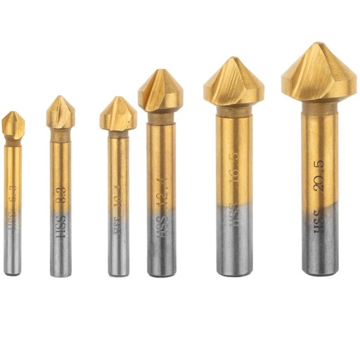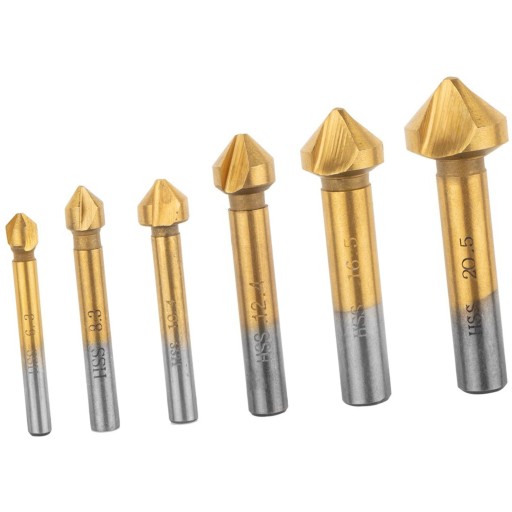 Wiertła fazujące pogłębiacze VERTO (nr ref. 60H822) to komplet 6 sztuk akcesoriów do fazowania o średnicach od 6.3 do 20.5 mm. Wiertła przeznaczone są do obróbki otworów w drewnie, sklejce, metalu, tworzywach sztucznych. Umożliwiają wykonywanie gniazd pod łby wkrętów i usuwanie zadziorów pozostałych po wierceniu. Wiertła wykonane zostały ze stali HSS.