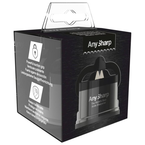 - Bezpieczeństwo i wygoda Prostota obsługi AnySharp® idzie w parze z wygodą i bezpieczeństwem, jakie zapewnia użytkownikom. Nie trzeba jej przytrzymywać ani używać dużej siły podczas ostrzenia. Ryzyko zranienia podczas ostrzenia jest zerowe.