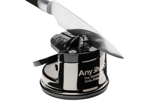 - Prosta obsługa AnySharp® jest niezwykle łatwa w obsłudze. Przymocowanie jej do blatu odbywa się za pomocą przyssawki. Następnie wystarczy przesuwać ostrze po płytkach ostrzących w powolnym, płynnym ruchu. Nie trzeba przykładać dużo siły, dzięki czemu nawet osoby starsze czy o słabszej kondycji fizycznej poradzą sobie z ostrzeniem. Dodatkowo, można to robić jedną ręką, ponieważ przyssawka utrzymuje ostrzałkę na miejscu. W przypadku większości ostrzałek, ważne jest utrzymanie odpowiedniego kąta ostrzenia, ale AnySharp® sama dba o optymalny kąt ostrzenia (20°).