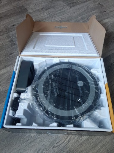 Komplet jak na załączonych zdjęciach: robot, stacja, zasilacz, pudełko podniszczone.