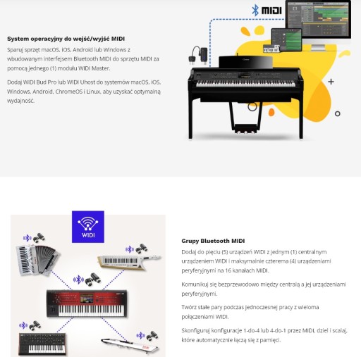 Podłącz do 5 urządzeń Bluetooth MIDI na grupę za pośrednictwem aplikacji WIDI lub trybu Group Auto-learn