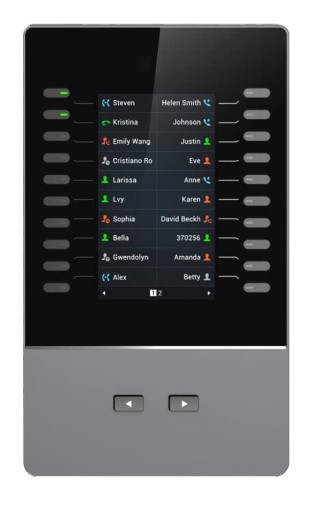 GBX20 to podświetlany moduł rozszerzenia LCD obsługiwany przez telefony IP klasy operatorskiej GRP2615, GRP2624, GRP2650, GRP2670, a także telefony wideo IP GXV3350 i GXV3450 . Moduł zawiera 20 dwukolorowych klawiszy rozszerzeń i 2 klawisze strzałek do przełączania stron (pozwalając każdemu GBX20 na obsługę do 40 kontaktów/rozszerzeń). Podłącz do 4 modułów GBX20 do kompatybilnych telefonów Grandstream, aby uzyskać łącznie 160 kontaktów/numerów wewnętrznych.