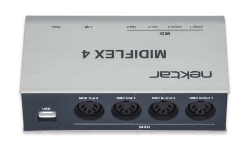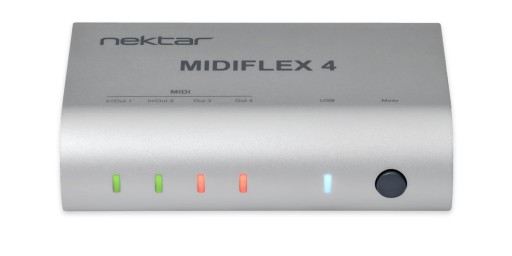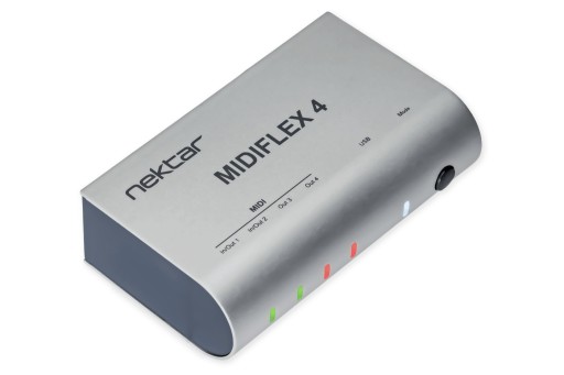 Nektar MIDIFLEX 4 USB MIDI to 4-portowy Interfejs MIDI oferujący elastyczność konfiguracji połączeń Twoich urządzeń MIDI na dowolnym komputerze MacOS czy Windows lub na urządzeniach Apple iOS. Dostępne 4 porty MIDI mogą być skonfigurowane jako 1 wejście / 3 wyjścia, 2 wejścia / 2 wyjścia lub 4 wyjścia – a jeśli potrzebujesz jeszcze więcej portów, po prostu podłącz kolejny MIDIFLEX 4, aby rozbudować konfigurację MIDI.