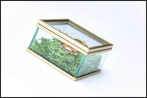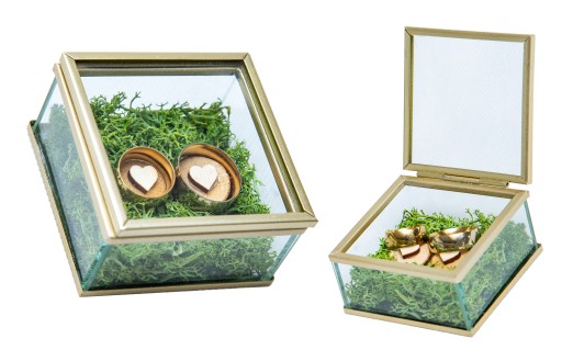 СТЕКЛЯННАЯ КОРОБКА ДЛЯ ОБРУЧАЛЬНЫХ КОЛЬЦ С МХОМ