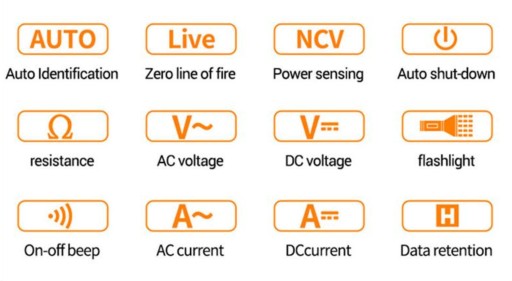 Urządzenie posiada również funkcję testu diod, testu ciągłości, testera NCV, określania przewodów fazowych i neutralnych.