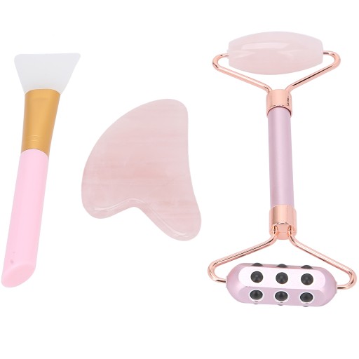 2. Po oczyszczeniu i tonizowaniu za pomocą silikonowego pędzelka nałóż serum, olejek i krem nawilżający. Następnie użyj wałka do twarzy, aby delikatnie wcisnąć produkt w skórę. Użyj narzędzi kosmetycznych Gua Sha, aby rozluźnić skórę i poprawić krążenie krwi.