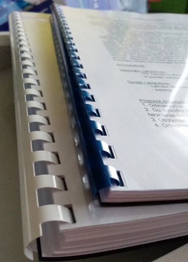 Oprawa przydatna dla roboczych wydruków. Z uwagi na brak trwałego bindowania oprawa nie nadaję do prac dyplomowych dla dziekanatu.