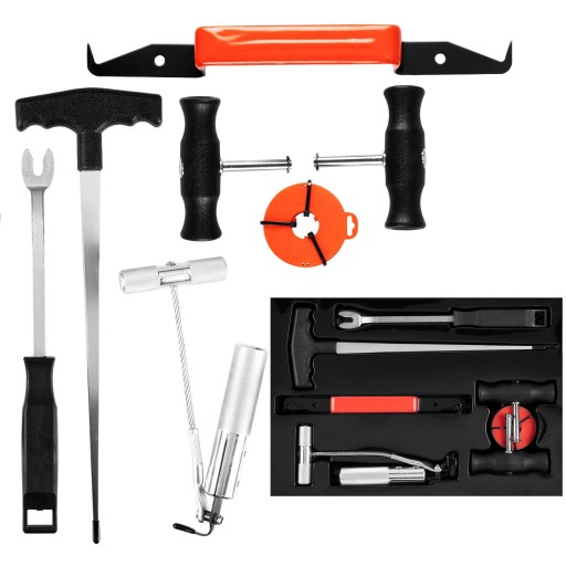 Zestaw do demontażu szyb 11-819, NEO TOOLS zestaw przeznaczony do różnych typaów aut. Przeznaczony do profesjonalnych warsztatów i serwisów samochodowych. Całość zapakowana w walizkę.