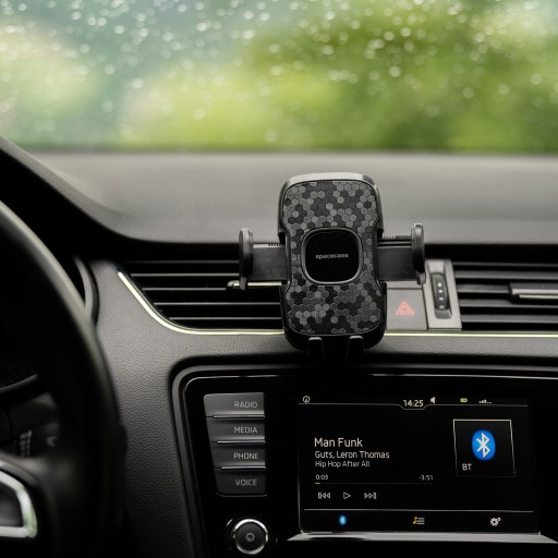 Nowoczesny i stylowy uchwyt na kratkę nawiewu Spacecase z kolekcji Ghost Series. Posiada automatycznie rozsuwane ramiona oraz obrotową głowicę. Umożliwia ustawienie telefonu w bardzo komfortowej pozycji, optymalnej do jazdy samochodem.