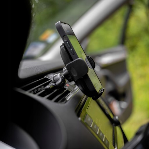 - Łatwy i trwały montaż na kratce nawiewu. Uchwyt wystarczy wsunąć w dowolną, dostępną kratkę nawiewu w samochodzie, a następnie zacisnąć element montażowy.