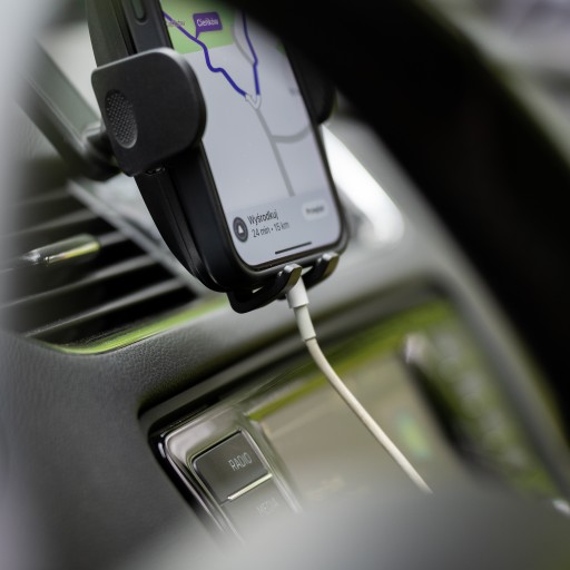 Uchwyt zapewnia optymalną pozycję dla wzroku kierowcy, co poprawia bezpieczeństwo podczas jazdy. Telefon może być obsługiwany jedną ręką praktycznie bez odrywania wzroku od drogi. Jest to zarówno wygodne, jak i bezpieczne rozwiązanie dla użytkowników.