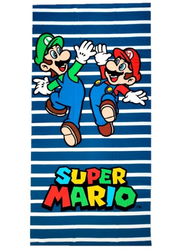 - Duży, kolorowy ręcznik dziecięcy na plażę lub basen z motywem Super Mario