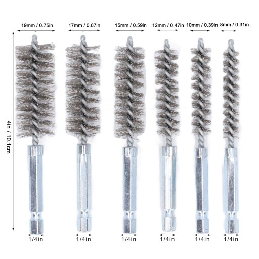 5. RÓŻNE SPECYFIKACJE: Szczotki do otworów w zestawie mają różne szerokości, w tym 8, 10, 12, 15, 17 i 19 mm, dzięki czemu możesz wybrać odpowiedni rozmiar do swoich potrzeb.