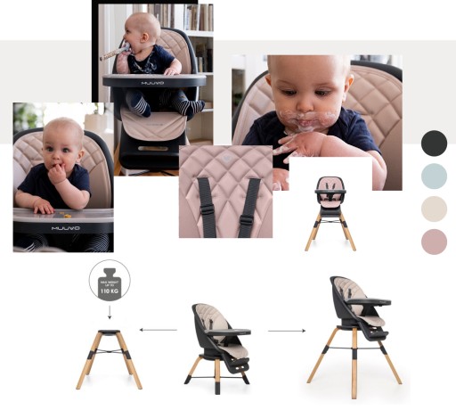 Krzesełko do karmienia Muuvo Choc 2 to moc sprytnych rozwiązań, które ułatwią wspólne spożywanie posiłków.