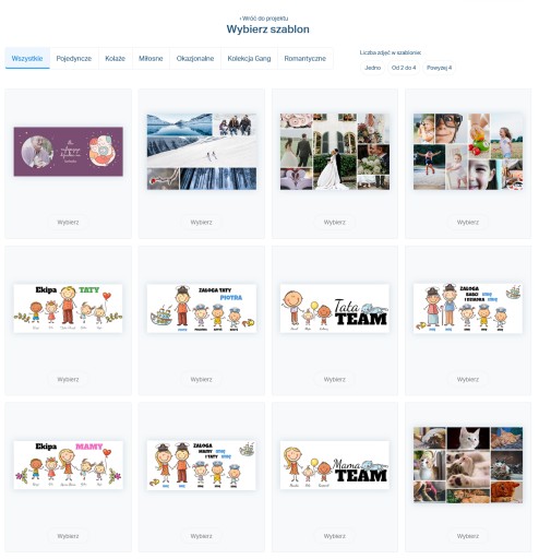 Stworzyliśmy dla Ciebie gotowe wzory, posegregowane na różne kategorie. Szybko i wygodnie wybierz ulubiony szablon i zmieniaj go dowolnie dodając zdjęcia, napisy i grafiki.