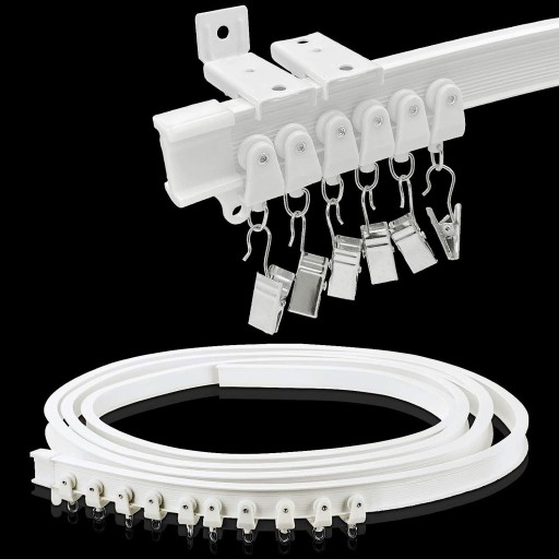 ⚙️【Wytrzymały materiał 】Szyna do zasłon sufitowych wykonana jest z tworzywa sztucznego PCW z płytami stalowymi wewnątrz, elastyczna konstrukcja, ale wystarczająco mocna, aby powiesić ciężkie zasłony, aby nie pękały ani nie pękają. Nasze podkładki do szyn zasłon przesuwają się płynnie i cicho w obrębie toru, a haki na szyny do zasłon są wykonane ze stali nierdzewnej o zygzakowatej konstrukcji, mocnej siły ugryzienia, mocno zaciskają zasłony.