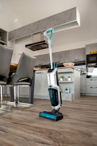 Czyszczenie ułatwia obrotowa szczotka z mikrofibry, która nadaje się do mycia delikatnych podłóg bez obawy o ich zarysowanie. Do usunięcia gruboziarnistych lub suchych zabrudzeń użyj spiralnej szczotki obrotowej, która także znajduje się w opakowaniu.