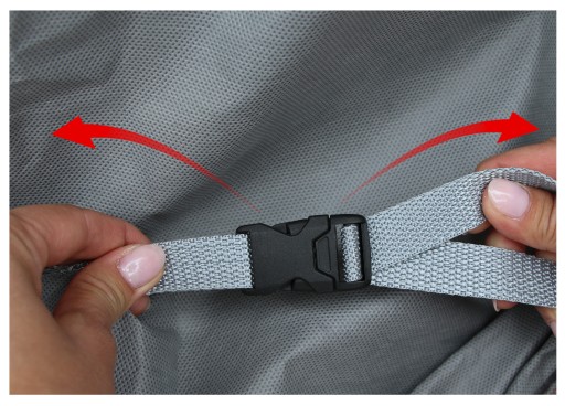 W pokrowcu zastosowane zostały mocne pasy zakończone klamrą wraz z napinaczem. Zostały one rozmieszczone na bokach oraz przodzie pokrowca.