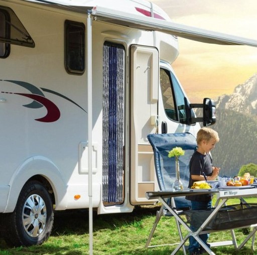 Dekoracyjna, praktyczna kurtyna drzwiowa do przyczep kempingowych, kamperów, namiotów, altanek działkowych ale także i do domu. Przyjemna w dotyku i cicha, bez irytujących grzechoczeń. Chroni przed latającymi owadami, światłem słonecznym. Należy ją zamocować na wewnętrznej stronie pojazdu. Zapewnia dobrą cyrkulację powietrza, przy równoczesnej ochronie przed owadami.