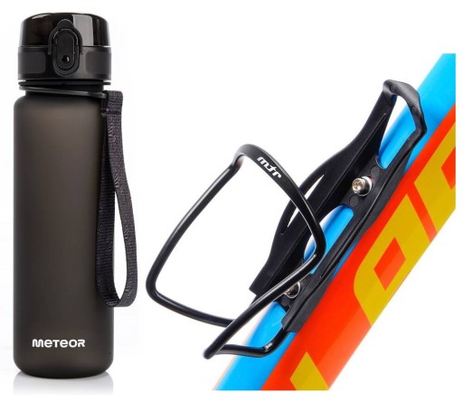 - Zestaw zawiera: Nowy, oryginalny bidon marki METEOR, Nowy, oryginalny koszyk na bidon, 2 śruby do montażu koszyka, nasz firmowy kalendarzyk