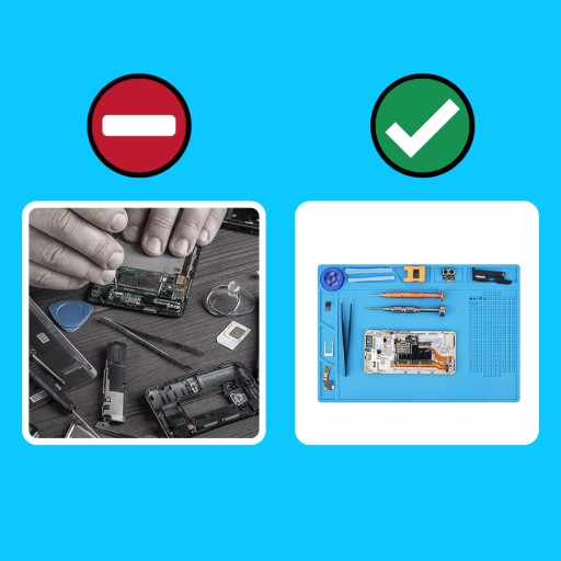 ✔️ Przechowywanie i organizacja✔️Mata pomaga w utrzymaniu porządku i organizacji podczas napraw. Możesz na niej bezpiecznie przechowywać drobne śrubki, elementy metalowe i inne części, dzięki czemu nie będziesz ich gubić podczas pracy.