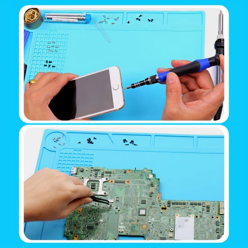 ✔️Odporność na wysokie temperatury✔️Mata silikonowa jest wytrzymała i odporna na wysokie temperatury do 500°C. Możesz bez obaw przeprowadzać naprawy wymagające lutowania czy innych czynności związanych z generowaniem wysokiej temperatury.