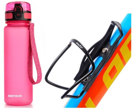 - Zestaw zawiera: Nowy, oryginalny bidon marki METEOR, Nowy, oryginalny koszyk na bidon, 2 śruby do montażu koszyka, nasz firmowy kalendarzyk