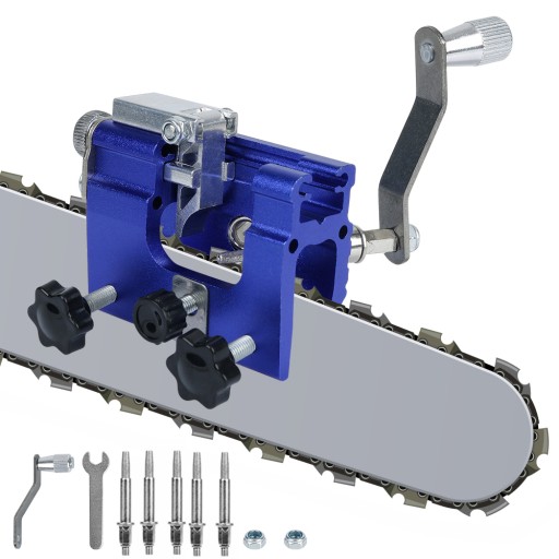 ✅Doskonała konstrukcja: Może być używana z większością pilarek łańcuchowych, ponieważ ma standardowy przedni kąt ostrzenia 30 °, anodyzowany aluminiowy wspornik ze zdejmowaną korbą i zestaw tulei prowadzących.