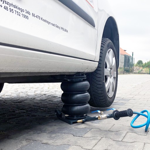 Podnośnik pneumatyczny jest używany do podnoszenia pojazdu, a po jego uniesieniu zaleca się umieszczenie pod pojazdem w wyznaczonych miejscach specjalnych podpór samochodowych, znanych również jako "kobyłki".