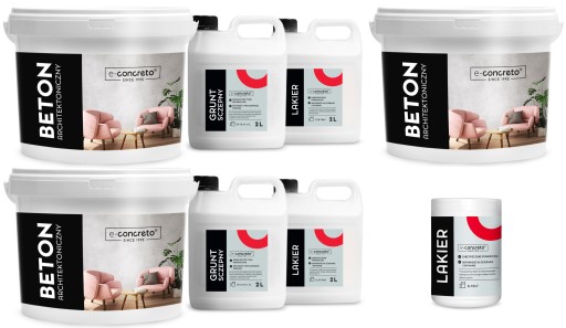 Zestaw oryginalnych produktów e-concreto zawiera do wykonania dekoracji na powierzchni do 45m2:
