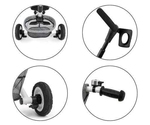 - Średnica kół: przód - 24 cm, tył - 20 cm