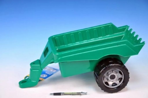 Duża przyczepa do pojazdów, jednoosiowa. Przyczepę można łączyć z innymi autami z serii, np. ładowarkami, koparkami. Wykonana z wysokiej jakości plastiku. Wymiary: długość - 47 cm wysokość - 18 cm głębokość - 12 cmZabawka dla dzieci od lat 3.